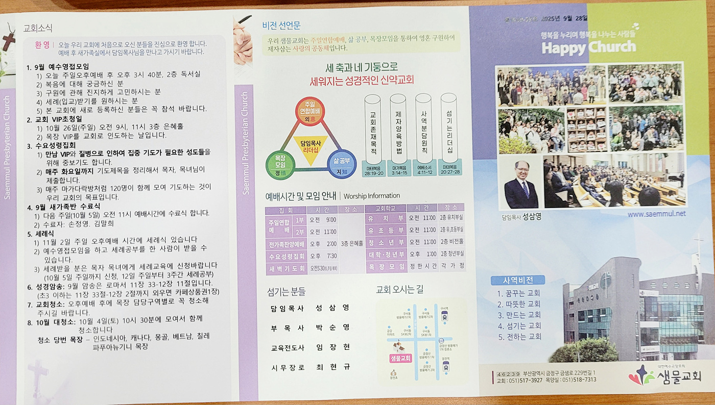 샘물교회 주보(2025.09.28) 페이지 정보 댓글0 조회143 작성일25.09.27 22:24 본문 공유 페이스북 공유 트위터 공유 샘물교회 주보(2025.09.28) 이전글샘물교회 주보(2025.10.05) 25.10.04 다음글샘물교회 주보(2025.09.21) 25.09.20