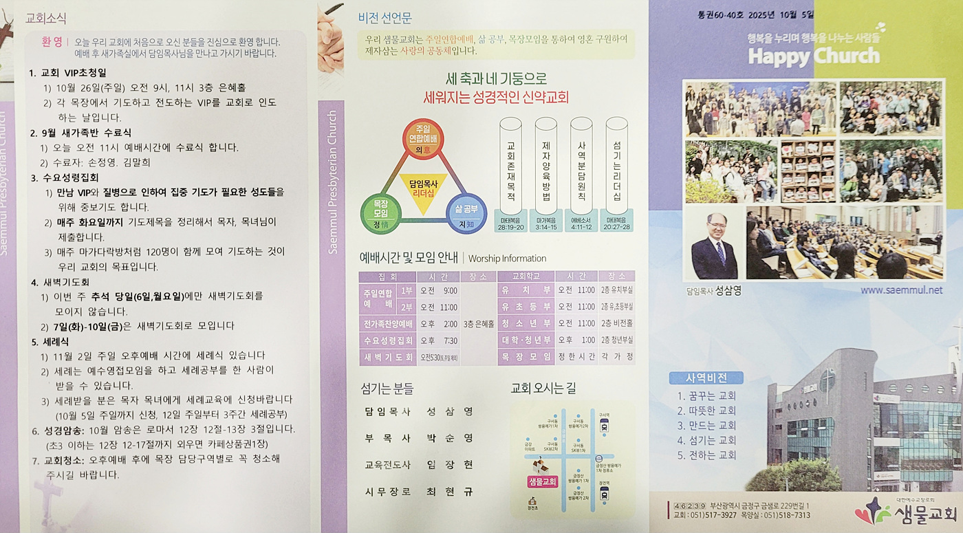 샘물교회 주보(2025.10.05) 페이지 정보 댓글0 조회145 작성일25.10.04 18:47 본문 공유 페이스북 공유 트위터 공유 샘물교회 주보(2025.10.05) 이전글샘물교회 주보(2025.10.12) 25.10.11 다음글샘물교회 주보(2025.09.28) 25.09.27