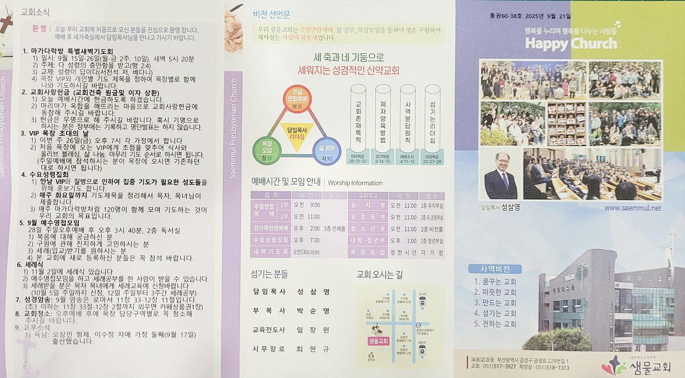 샘물교회 주보(2025.09.21) 페이지 정보 댓글0 조회135 작성일25.09.20 21:27 본문 공유 페이스북 공유 트위터 공유 샘물교회 주보(2025.09.21) 이전글샘물교회 주보(2025.09.28) 25.09.27 다음글샘물교회주보(2025.09.14) 25.09.15