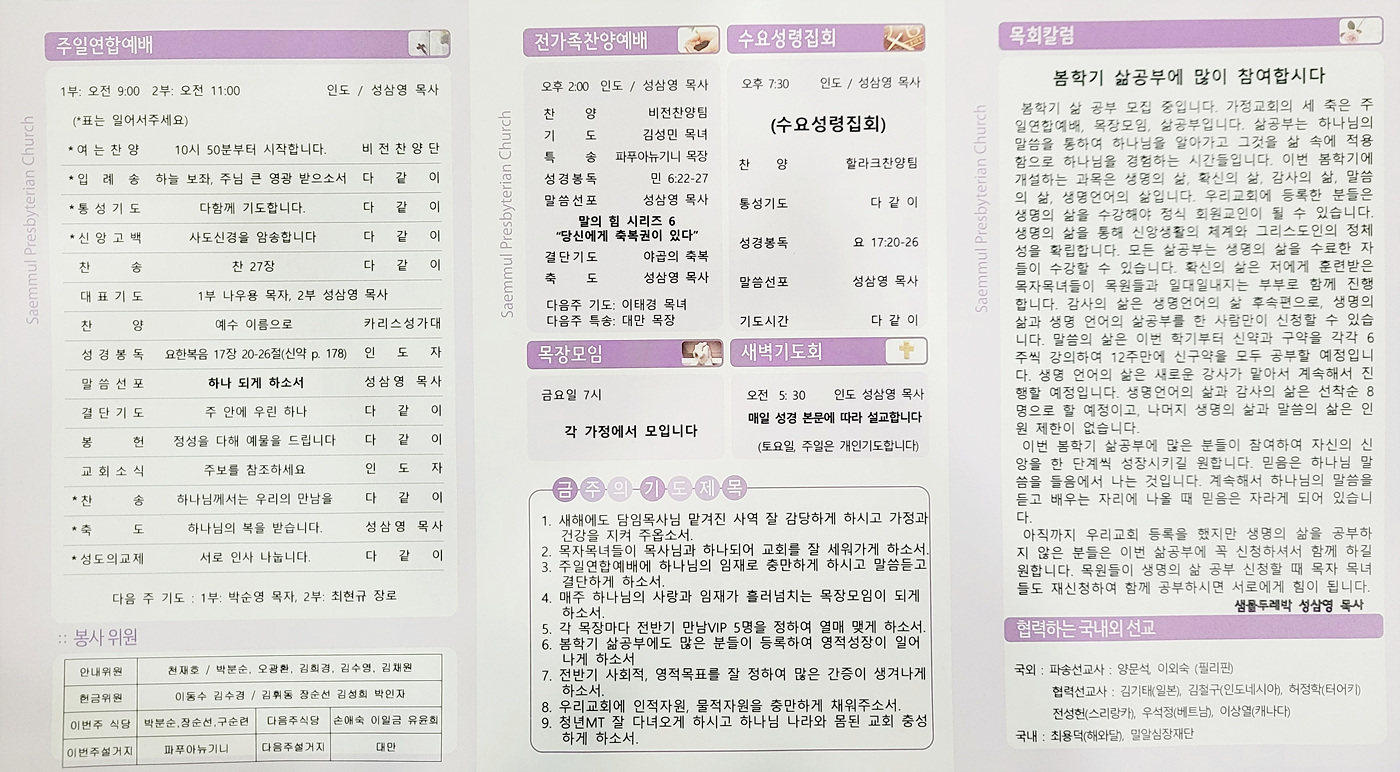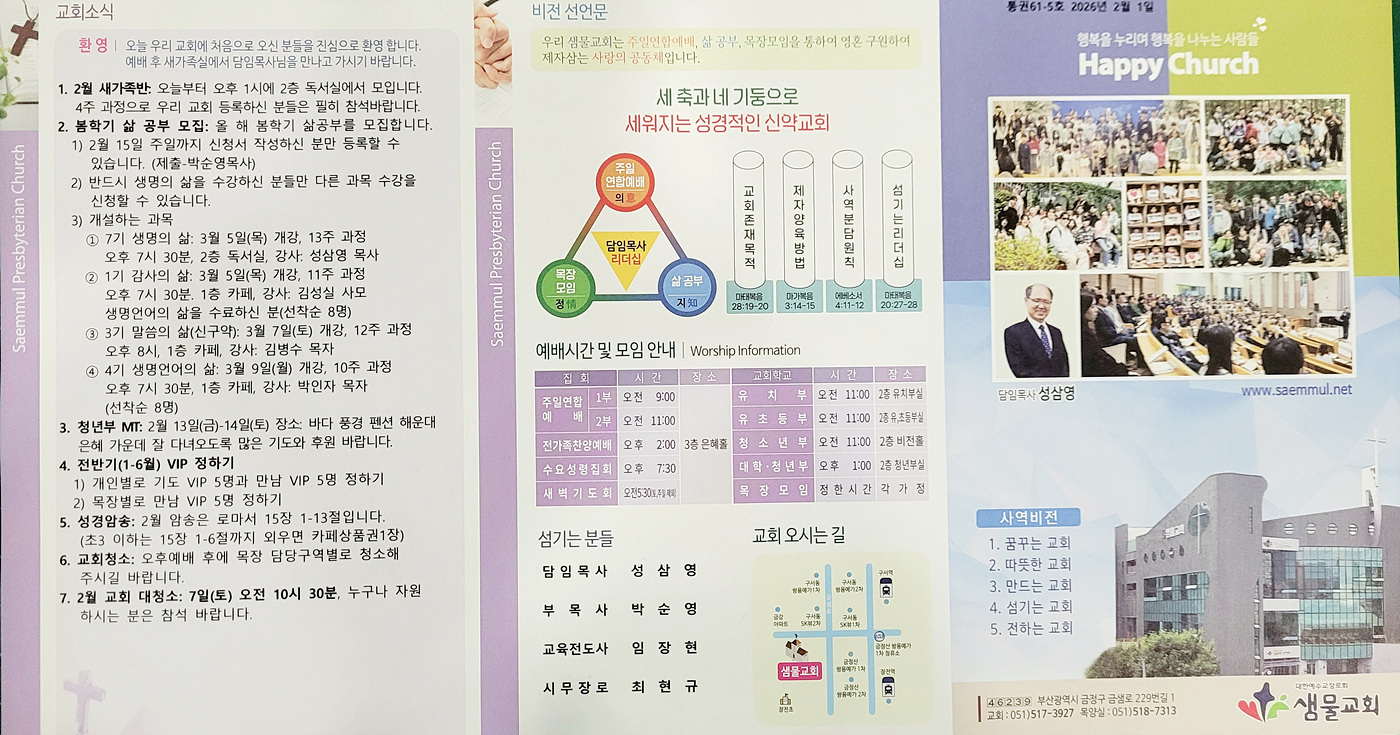 샘물교회 주보(2026.02.01) 페이지 정보 댓글0 조회30 작성일26.01.31 16:36 본문 공유 페이스북 공유 트위터 공유 샘물교회 주보(2026.02.01) 이전글샘물교회 주보(2026.02.08) 26.02.07 다음글샘물교회 주보(2026.01.26) 26.01.31