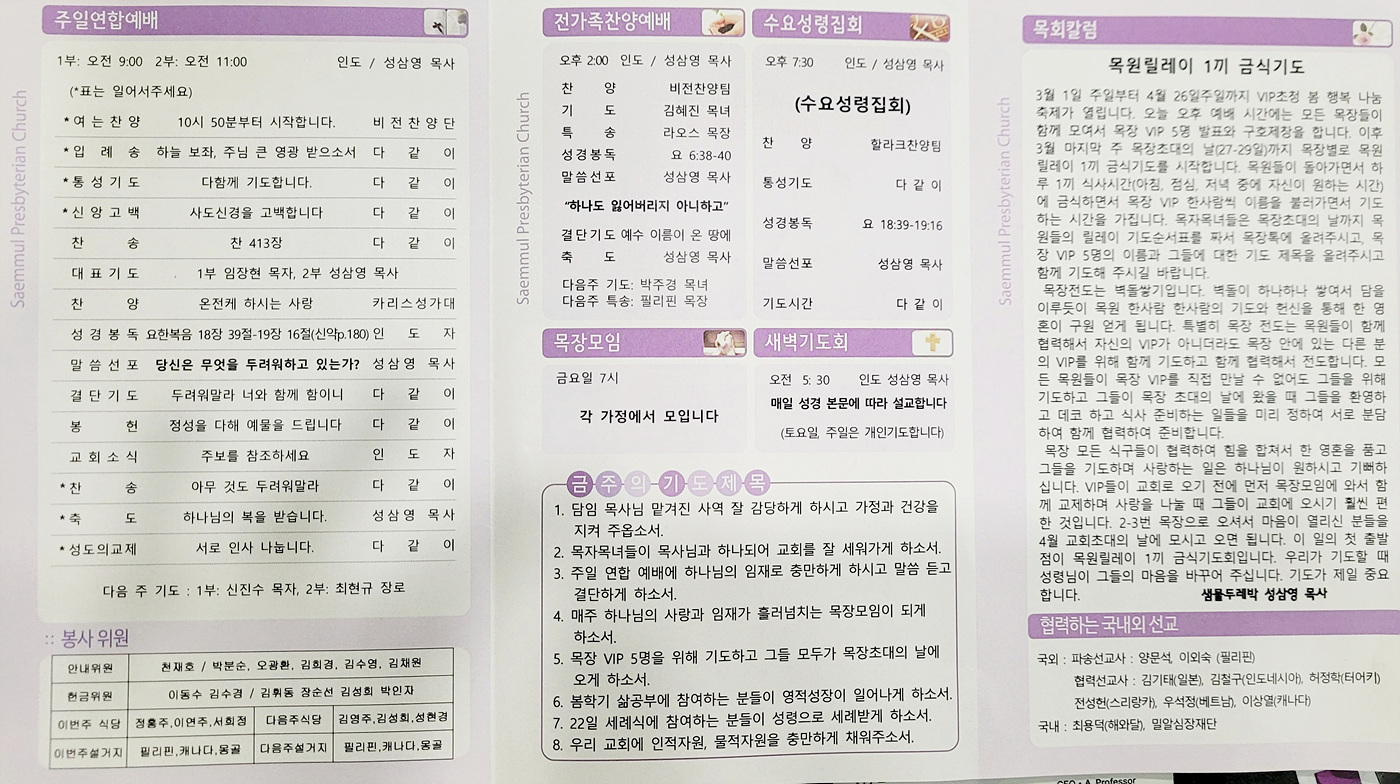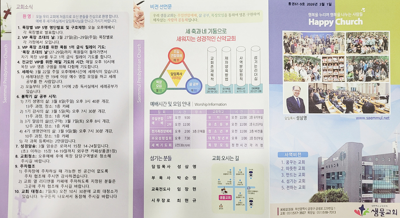샘물교회 주보(2026.03.01) 페이지 정보 댓글0 조회29 작성일26.02.28 22:34 본문 공유 페이스북 공유 트위터 공유 샘물교회 주보(2026.03.01) 이전글샘물교회 주보(2026.03.08) 26.03.07 다음글샘물교회 주보(2026.02.22) 26.02.21