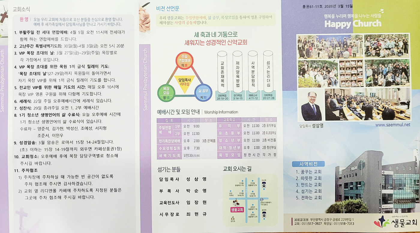 샘물교회 주보(2026.03.15) 페이지 정보 댓글0 조회15 작성일26.03.14 17:12 본문 공유 페이스북 공유 트위터 공유 샘물교회 주보(2026.03.15) 이전글샘물교회 주보(2026.03.22) 26.03.22 다음글샘물교회 주보(2026.03.08) 26.03.07