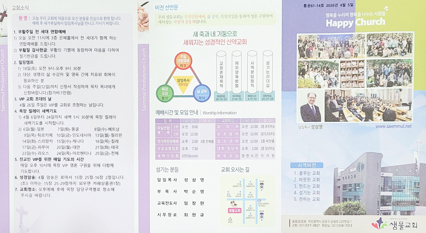 샘물교회 주보(26.04.05) 페이지 정보 댓글0 조회6 작성일26.04.04 17:43 본문 공유 페이스북 공유 트위터 공유 샘물교회 주보(26.04.05) 이전글샘물교회 주보(26.04.12) 26.04.11 다음글샘물교회 주보(2026.03.29) 26.03.28